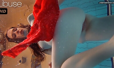 russische schwimmerin lina mercury wird nackt und blinkt striptease unter wasser