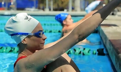 Redhead Abigaiil Morris is having some naughty fun in the sun shaking her big baps and donk by the pool, bootylicious brunette Sammy Tor