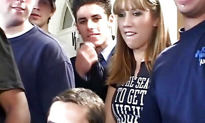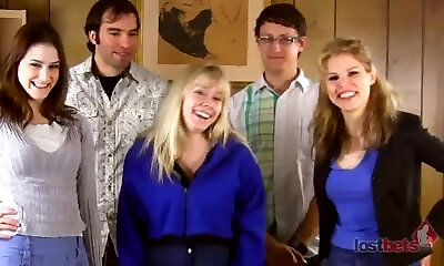Hilarious blond teens take a chance to gargle a strong hot and big cock (FFM)