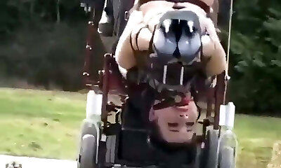 Bobbi Blair gets an climax while playing with a fucky-fucky machine in a barn