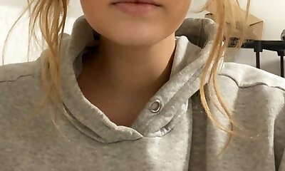 Busty Blonde Teen with huge Natural Orbs is jizzing like crazy part 2