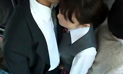 Japanese public bus blowjob and fuck