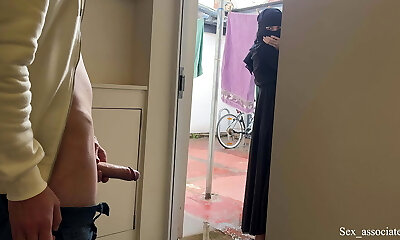 Publick Fuckpole Flashing. I pull out my penis in front of a young pregnant muslim neighbor in niqab and she helped me jizz