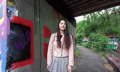Sweet picked up teen Vanessa Decker gives blowjob to one strange drive before having super-naughty hump