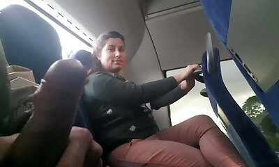 Voyeur lures Milf to Suck&Wank his Dick in Bus