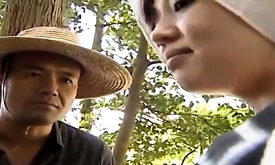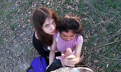 Anje Hoshi, and horny friend Asian hotties in outdoor threeway