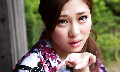 Lewd buxom Japanese ultra-cutie Karin Asahi gonna get her pussy taunted outdoors